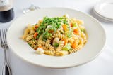 Fusilli pasta with mixed vegetables in a choice of garlic & olive oil, pomodoro sauce, or cream sauce.